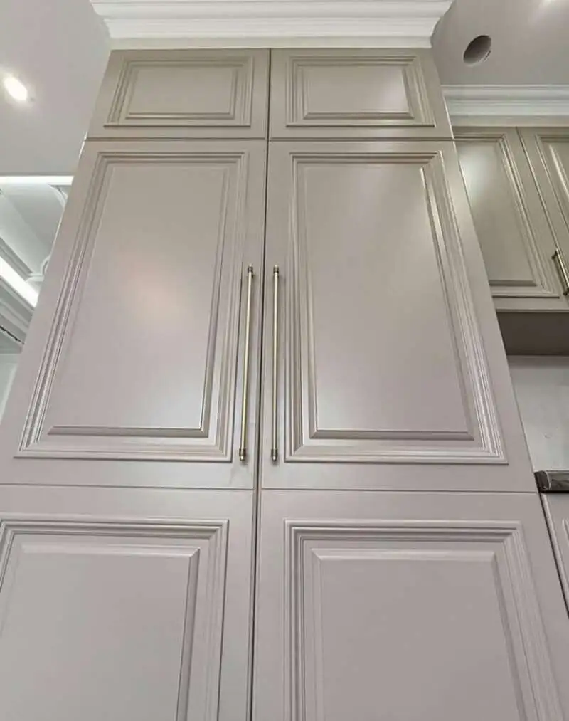 Ce modèle de cuisine peut être fabriqué dans toutes les dimensions. La couleur et la configuration peuvent également être modifiées. Il est possible de réduire le coût du mobilier en adaptant les dimensions, en simplifiant le projet ou en installant une quincaillerie plus économique.