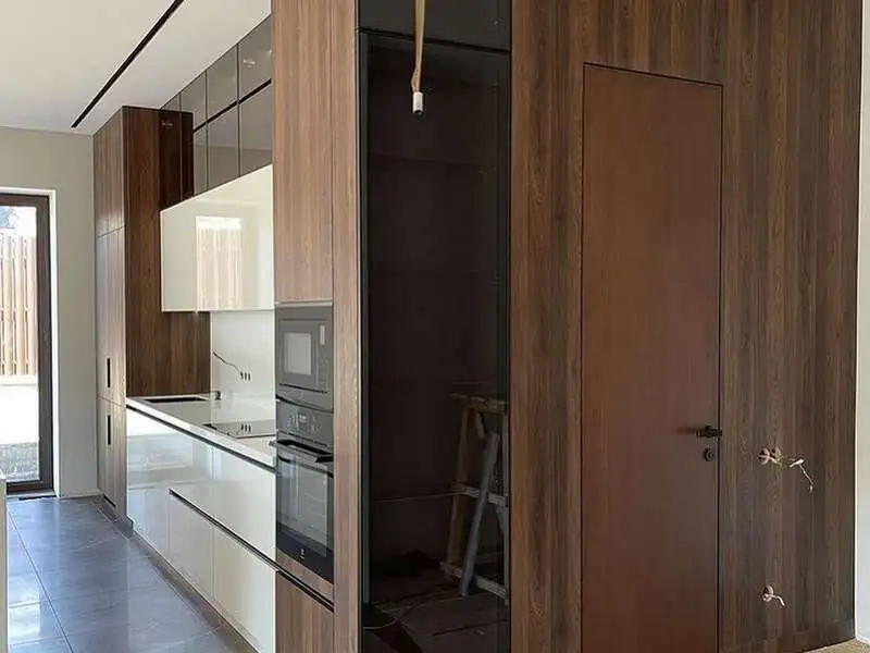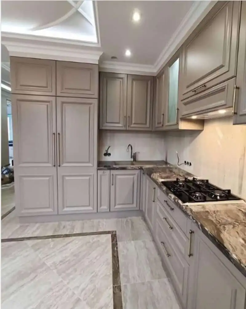 Possibilité d’installation : – d’une crédence en verre trempé 6 mm avec impression photo – d’une crédence en MDF 6 mm (revêtue de plastique fabriqué en Italie, aux États-Unis, en Russie ou en Allemagne) Toute la quincaillerie de cet ensemble est de la marque Blum (Autriche). Possibilité d’installation de quincaillerie Hettich (Allemagne) ou Firmax
